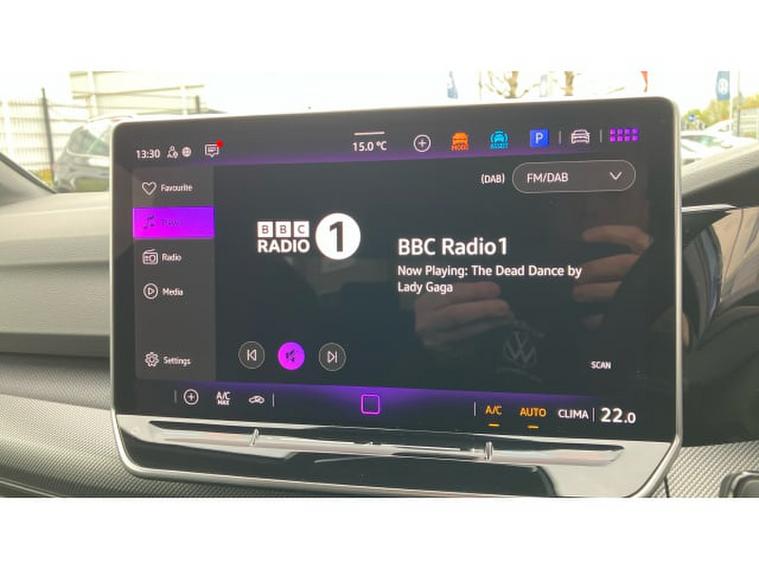 As standard, it comes with touch screen media with satellite navigation, Apple Car Play, Android Auto, Bluetooth and DAB radio, front and rear parking sensors, keyless entry, digital drivers cockpit, heated steering wheel, R-Line sports seats, adaptive cruise control, lane assist, dual-zone climate control with air conditioning, auto lights and wipers, front fog lights, LED lights, dynamic indicators, electronic handbrake, privacy glass, 30 colour LED interior lighting, and much more.