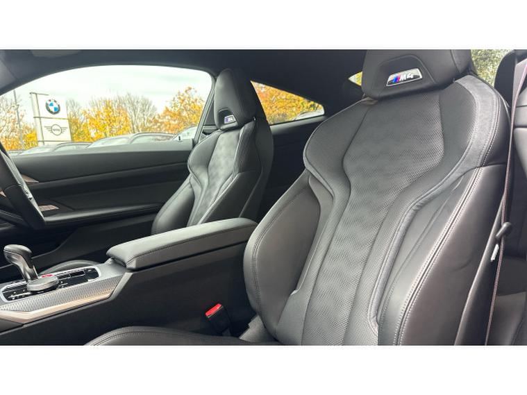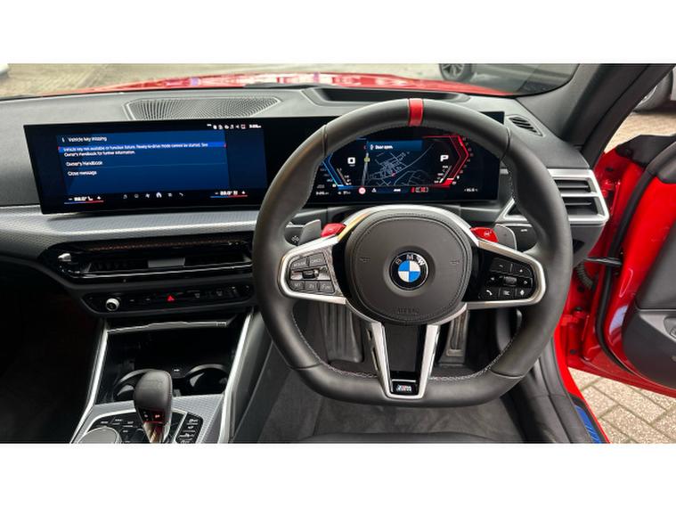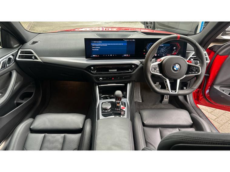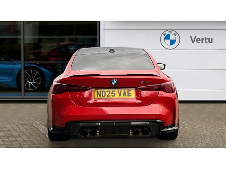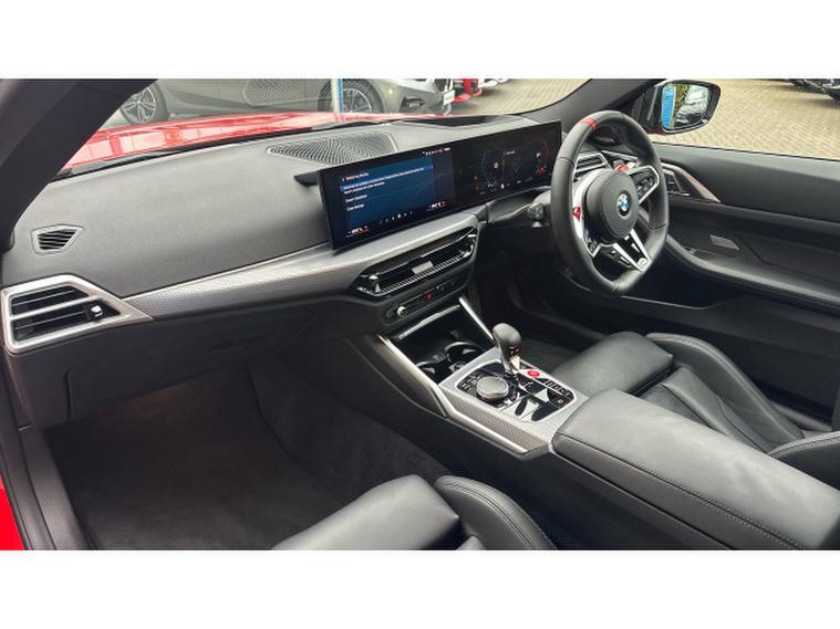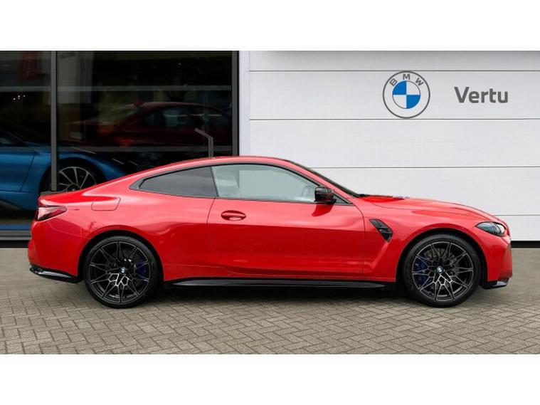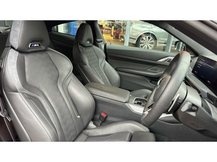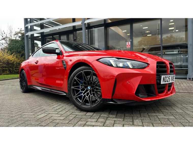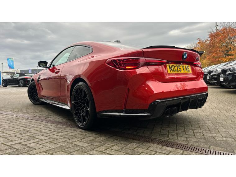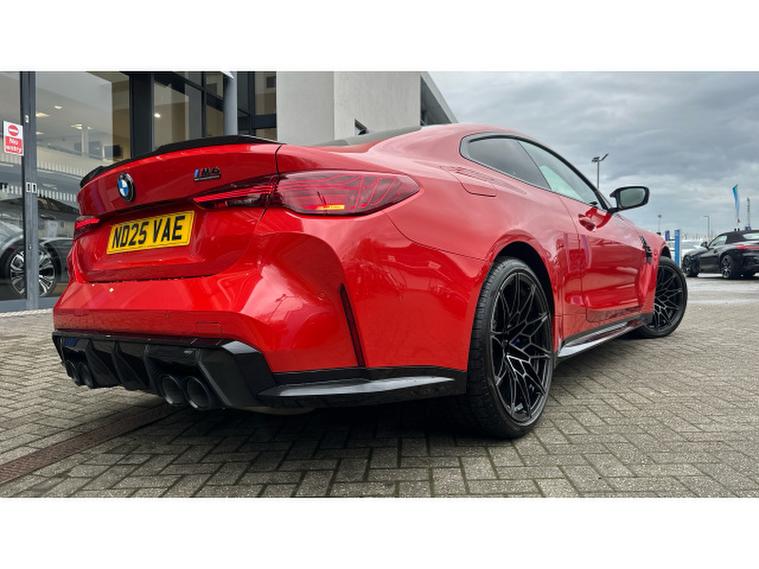 BMW M4 xDrive Competition M 2dr Step Auto Petrol Coupe, , The 2025 BMW M4 Competition in Toronto Red is now available and ready to test drive at Vertu BMW Durham. The BMW M4 Competition is a bold expression of high-performance engineering, blending striking coupe styling with razor-sharp handling and immense twin-turbo power for an adrenaline-charged driving experience. Diving into the standout features The Ultimate Package with Heated Electric Memory Merino Leather Seating with Lumbar Support offer wonderful comfort for all and the perfect warming seat during the cold winter months. Heated Steering Wheel, perfect for keeping warm during your winter commuting. Comfort Access allows for hands-free entry and engine startup. The Electric Bootlid lets you open and close your boot at the touch of a button for easy access. Enhanced Bluetooth with Wireless Charging lets you stay charged and connected on the go as you enjoy endless music streaming and hands-free calls. The Harman Kardon Surround Sound System lets you listen to all your favourite sounds through a crystal-clear studio like sound system.