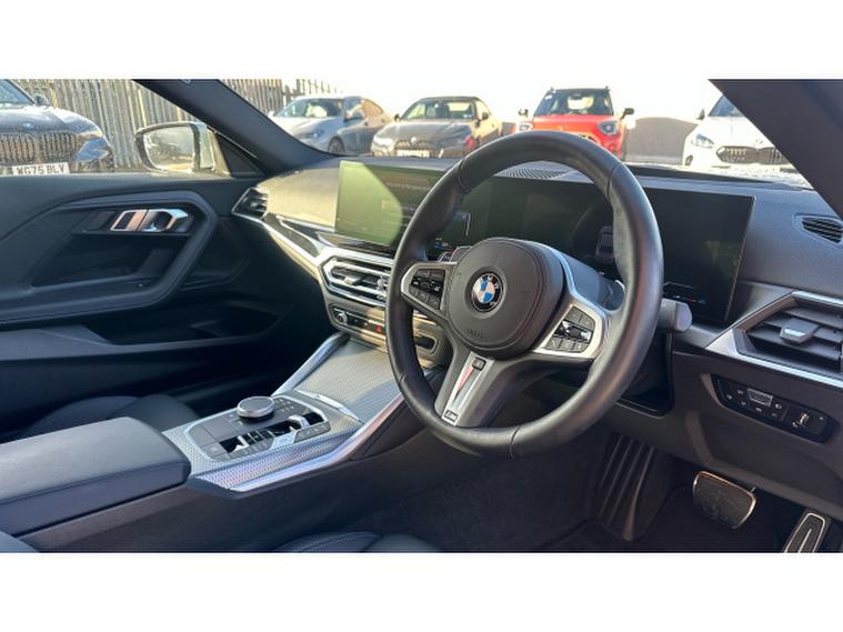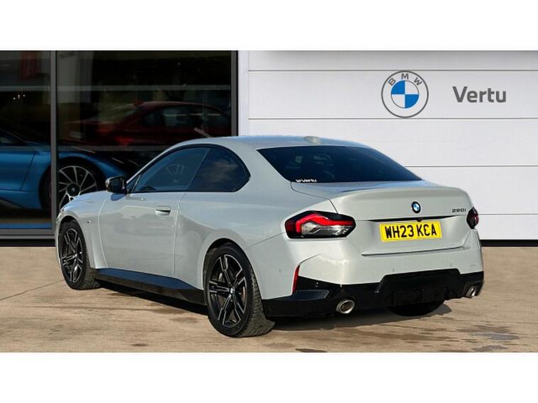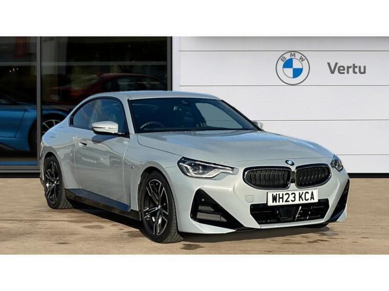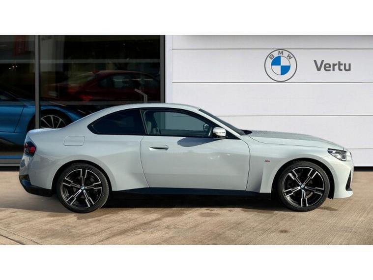 BMW 2 Series 220i M Sport 2dr Step Auto Petrol Coupe, , Presenting a superb 2023 BMW 220i M Sport Coup finished in striking Brooklyn Grey, complemented by a refined interior featuring Alcantara/Sensatec Black upholstery with Blue stitching. With just 13, 768 miles on the clock, this beautifully balanced coup embodies BMWs signature blend of performance, style, and sophistication. When you choose to buy from Vertu BMW Exeter, you can do so with complete confidence. Every one of our Approved Used BMWs comes with 12 Months BMW Approved Warranty, 12 Months BMW Roadside Assistance, 12 Months MOT, and a full service history. Each vehicle is thoroughly prepared and maintained by our manufacturer-trained technicians, ensuring it meets the highest standards of quality, safety, and reliability. At Vertu BMW Exeter, we pride ourselves on delivering exceptional customer care and expert advice to make your ownership experience as enjoyable and effortless as possible. To help you explore this exceptional BMW 220i M Sport Coup in more detail, simply contact our friendly team, who will be delighted to arrange a personalised video presentation and answer any questions you may have about the car. This model comes equipped with a host of premium features that elevate every drive, including Electric Memory Seats for ultimate comfort and convenience, a Driving Assistant system designed to enhance safety and awareness on the road, and a Heated Steering Wheel that ensures warmth and luxury during cooler days. Experience dynamic performance and refined craftsmanship with this outstanding BMW 220i M Sport Coup, available now at Vertu BMW Exeter.