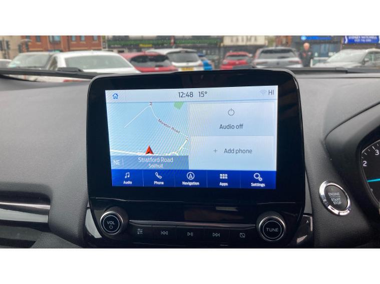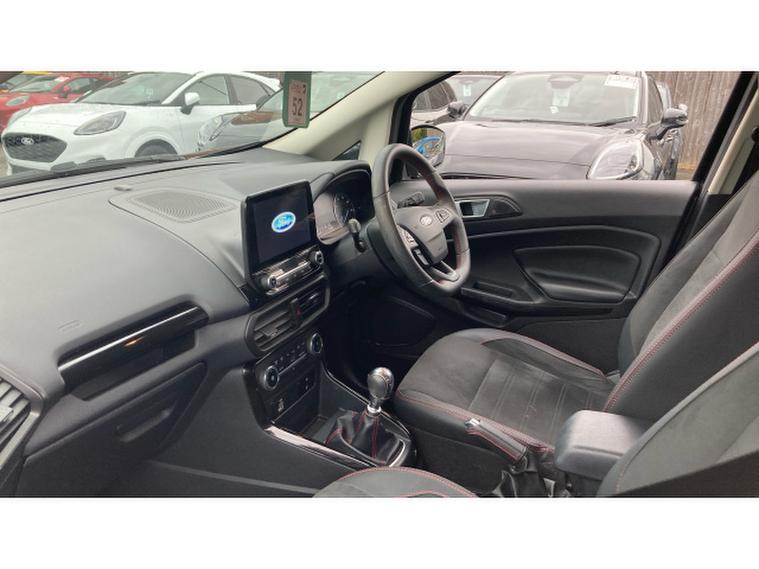 Ford EcoSport 1.0 EcoBoost 125 ST-Line 5dr Petrol Hatchback, , Finished in Metallic Black this ST-Line Ecosport is so practical with good spec. The ST-Line has some great features as standard including SYNC Navigation with Apple / Android Car Play, Rear Privacy Glass, Rear Parking Camera, Auto Lights, and Wipers, Heated Front Screen, the technology on this compact SUV is amazing to test drives are welcomed. All of our vehicles at Bristol Street Motors come fully prepared with our peace of mind Main Dealer guarantee. Every vehicle is fully prepared both mechanically and cosmetically up to the highest standard, every vehicle also comes with a full HPI vehicle check assuring you that your new vehicle will have no registered accident claims reported, or any outstanding finance, it also shows the vehicle has not been imported. In addition to this we also do a full Government VOSA report check to verify the mileage on all cars over 3 years old. This service comes free of charge to all our customers unlike other main dealers who charge you an admin fee for this service. We also offer nationwide delivery on all our vehicles, so call today to arrange a viewing / test drive and let one of our professional sales executives give you the Bristol Street experience.