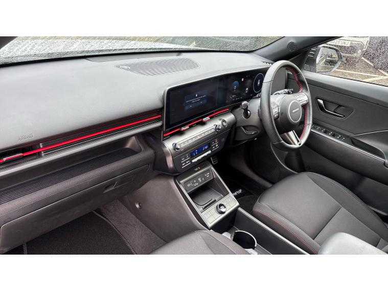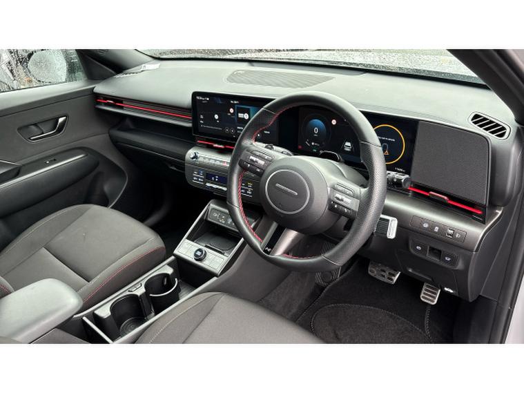 Hyundai KONA 1.6 Hybrid 129 N Line 5dr DCT Hybrid Hatchback, , This 2022 Hyundai Kona Hatchback 1.6 Hybrid 129 N Line DCT, finished in sleek Grey and showing just over 11, 500 miles, combines sporty design with efficient hybrid performance and premium features. Powered by a 1.6-litre petrol hybrid engine paired with a smooth dual-clutch automatic transmission, it delivers a responsive yet economical drive, blending electric efficiency with engaging performance. As the N Line model, it features distinctive sporty styling cues inside and out, including N Line body kit, sports seats, alloy pedals, and unique interior trim, giving it a dynamic and refined presence on the road. The cabin is equipped with a 10.25-inch touchscreen with navigation, Apple CarPlay and Android Auto, reversing camera, adaptive cruise control, and a suite of advanced safety systems. Combining hybrid efficiency with sporty looks and driving character, the Kona N Line Hybrid offers an excellent mix of practicality, technology, and style. A personalised video presentation is available on request.