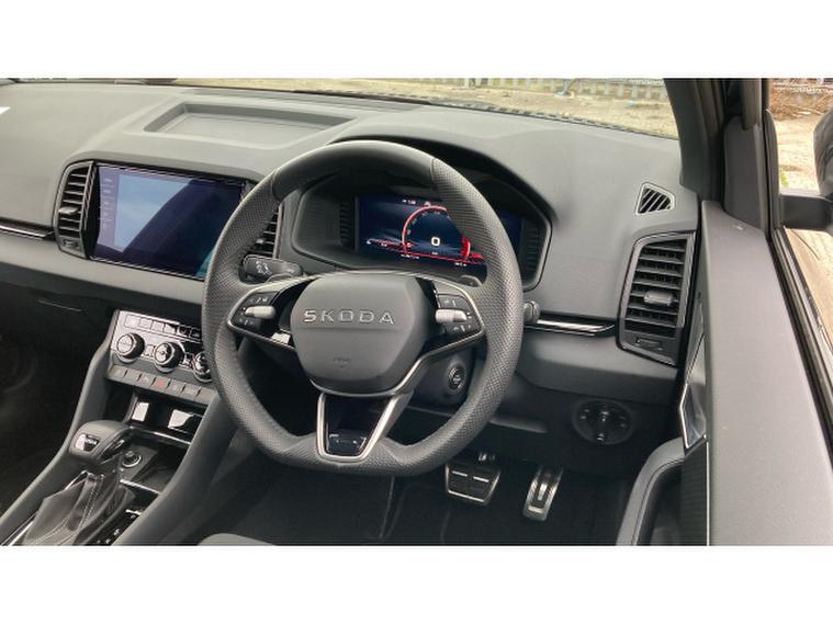 Skoda Karoq 1.5 TSI Sportline Edition 5dr DSG Petrol Estate, , Get ready to turn heads with this striking Skoda Karoq 1.5 TSI Sportline Edition DSG, finished in sleek Black and with just 3825 miles on the clock. This is Skodas sporty mid-size SUV at its finest blending bold design, premium comfort, and dynamic performance in one outstanding package.