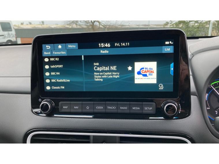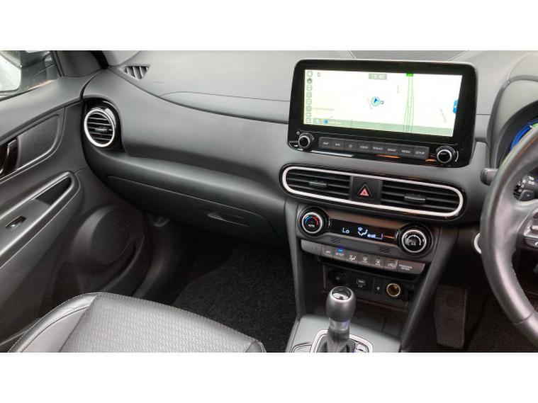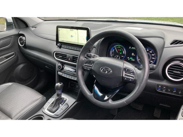 Hyundai Kona 1.6 GDi Hybrid Premium SE 5dr DCT Hybrid Hatchback, , This Hyundai KONA 1.6 GDi Hybrid Premium SE 5dr DCT Hybrid Hatchback is a sleek, efficient, and feature-rich compact SUV that delivers the perfect balance of performance and practicality. With only 11, 575 miles on the clock and finished in a clean, modern white, this 21/21 reg model showcases Hyundais commitment to quality and innovation. Powered by a 1.6-litre GDi hybrid engine paired with a smooth DCT automatic gearbox, it offers an excellent blend of responsive power and impressive fuel economy, ideal for both city driving and longer journeys. The Premium SE trim ensures a top-tier driving experience with luxury features such as leather upholstery, heated and ventilated front seats, a heated steering wheel, and a panoramic sunroof. The infotainment system includes a large touchscreen with satellite navigation, Apple CarPlay, and Android Auto for seamless connectivity. Safety is also a strong point, with advanced driver assistance features like blind-spot monitoring, lane keep assist, and forward collision avoidance. The KONAs distinctive design, raised driving position, and refined interior make it a pleasure to drive every day. Stylish, efficient, and packed with technology, this Hyundai KONA is ready to impressvisit us here at Hyundai Peterlee and take a closer look today.