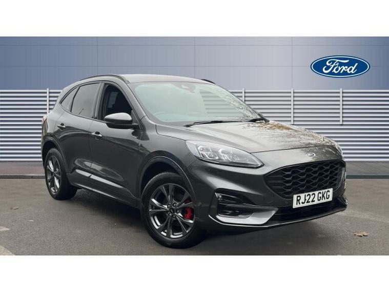 Ford Kuga 2.5 PHEV ST-Line 5dr CVT Estate, , Vertu Ford Durham are delighted to have this Ford Kuga ST-Line PHEV which is finished in Magnetic grey metallic paint. The Plug in Hybrid feature of this Kuga gives you the dual benefit of pure electric power and a powerful petrol engine as well. This ST-Line comes with a generous specification as you would expect. All our vehicles at Vertu Motors come fully prepared with our peace of mind Main Dealer guarantee. Every vehicle is fully prepared both mechanically and cosmetically up to the highest standard which even includes having any tyre replaced that has less than 3mm tread depth (legal limit is 1.6mm). Every vehicle will have a minimum of 9 months MOT remaining and you will not have to service the vehicle for at least 6 months or 6000 miles. We ensure that you will have a minimum of 2 keys and to give you even further reassurance we also supply you with a 3 months complimentary warranty and a 14-day money back guarantee. Our vehicles also come with a full HPI vehicle check assuring you that your new vehicle will have no registered accident claims reported, or any outstanding finance, it also shows the vehicle has not been imported. In addition to this we also do a full Government VOSA report check to verify the mileage on all cars over 3 years old. This service comes free of charge to all our customers unlike other main dealers who charge you an admin fee for this service. We also offer nationwide delivery on all our vehicles, so call today to arrange a viewing.