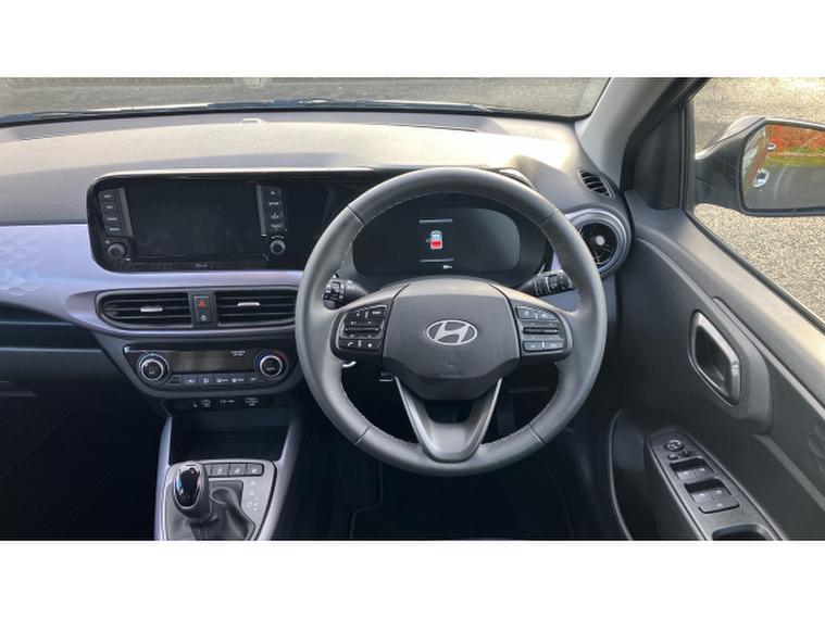 Hyundai i10 1.0 [63] Premium 5dr Auto [Nav] Petrol Hatchback, , This superb 2025 Hyundai i10 1.0 Premium Auto with Nav is great because of its generous standard features, including a large touchscreen with navigation, heated front seats, and a heated steering wheel. It also comes with a suite of advanced safety features, such as Forward Collision-Avoidance Assist, Lane Keeping Assist, and a rear-view camera, making it a well-equipped and safe option for city driving. Buy your vehicle in complete confidence with us. Our experienced sales team would be happy to send you a personalised video, so you can take a tour of the vehicle from the comfort of your own home. We can also organise a test drive at your convenience. If you require further information regarding this vehicle please don't hesitate to contact us, we would be more than happy to assist.