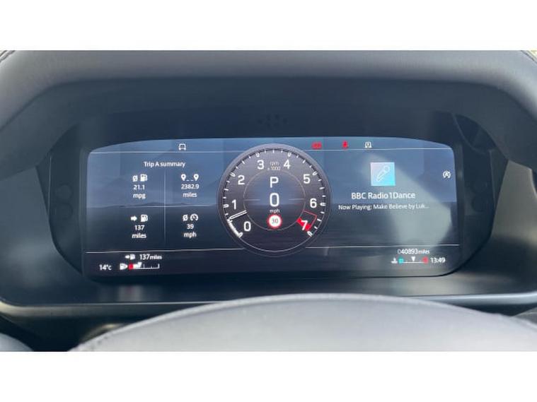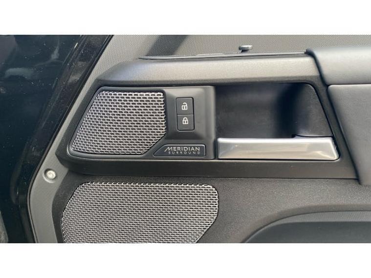 Matrix LED headlights, Meridian Surround Sound System, 3D Surround Camera, Adaptive Cruise Control, heated and cooled electric memory front seats, heated steering wheel, panoramic glass roof, Configurable Terrain Response, electronic air suspension, and Apple CarPlay & Android Auto.