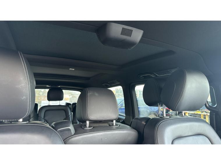 Inside, luxury takes centre stage. The eight sumptuous black leather seats offer outstanding comfort for passengers, while the panoramic sliding sunroof floods the cabin with light, creating a true sense of space. The electric sliding side doors make entry and exit a breeze, perfect for family life or corporate travel. Heated front seats ensure year-round comfort, while the Easy-Pack powered tailgate makes loading luggage or kit effortless.