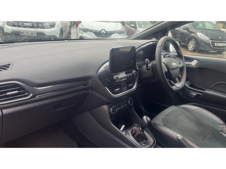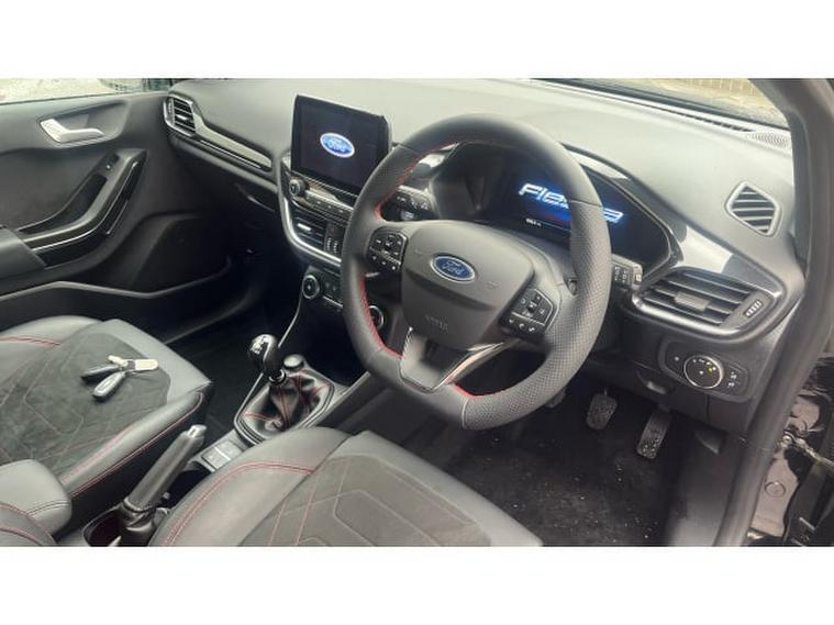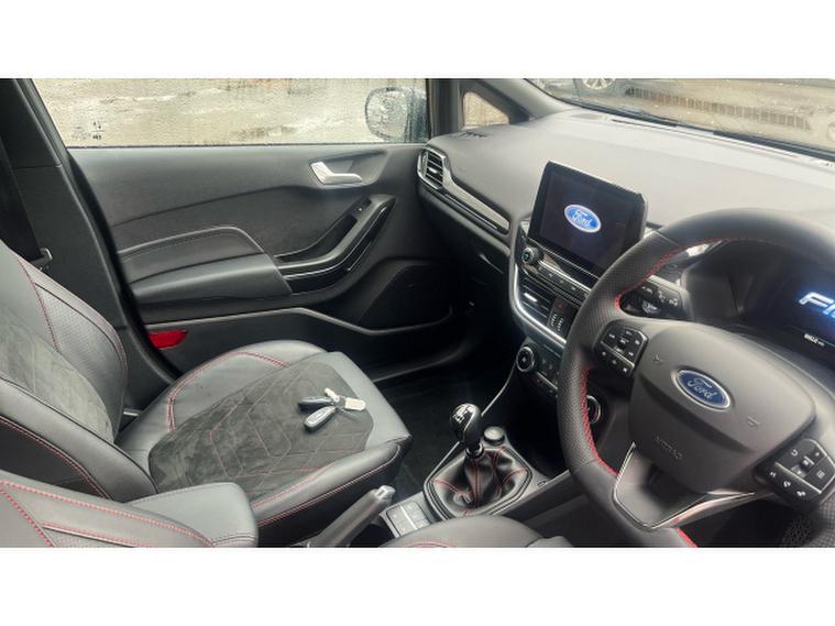Ford Fiesta 1.0 EcoBoost ST-Line X 5dr Petrol Hatchback, , Here with us at Renault Leicester LE27JU we have a stunning Ford Fiesta 1.0 Ecoboost ST-Line X finished in metallic black, registered on 17/08/2023 with only 5622 miles on since new. This brilliant hatchback comes with plenty of spec tech and features including diamond cut alloy wheels, rear privacy glass, rear parking sensors and camera, half leather seating with heated seats and steering wheel, heated front screen, air conditioning, USB, DAB radio, Bluetooth for streaming your favorite music or taking important calls on the move, automatic lights and wipers, cruise control/speed limiter, integrated navigation so you never get lost and lots more. All of our cars come with two keys, fully inspected and HPI clear for your peace of mind for further information or a personalised video get in touch with our friendly expert sales team.