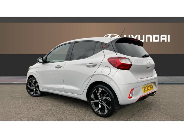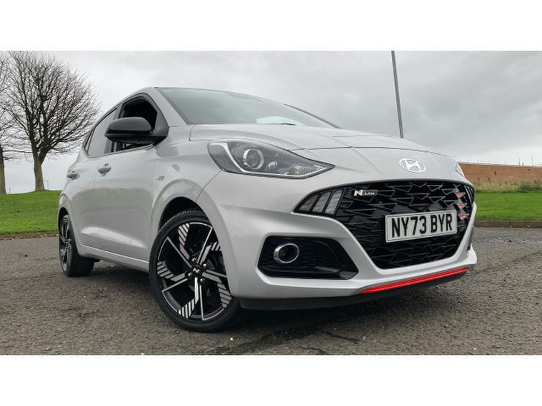 Hyundai i10 1.0 T-GDi N Line 5dr Petrol Hatchback, , The Hyundai i10 1.0 T-GDi N Line 5dr Petrol Hatchback is a compact, sporty, and stylish car that perfectly balances fun performance with everyday practicality. Finished in modern grey and showing just 16, 859 miles on the clock, this 23/73 reg model is in excellent condition and ready for the road. Powered by a lively 1.0-litre turbocharged petrol engine, it delivers impressive power and agility for a small car, making it enjoyable to drive both in town and on the open road. The N Line trim adds a sporty edge, featuring exclusive styling details such as distinctive bumpers, alloy wheels, and N Line badging, giving the i10 a confident and dynamic look. Inside, the cabin continues the theme with N Line sports seats, red stitching, and a flat-bottom steering wheel, creating an engaging driving atmosphere. The car also offers practical touches like Isofix child seat preparation, a touchscreen infotainment system with Apple CarPlay and Android Auto, and a range of safety features including lane keeping assist and forward collision warning. Compact yet surprisingly spacious, the i10 is perfect for city driving or first-time buyers. Pop in here at Hyundai Peterlee today to take a closer look and discover why this sporty hatchback stands out from the crowd.