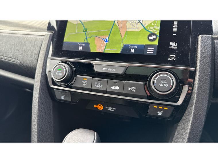 The range-topping EX trim ensures you travel in comfort and style, offering a premium specification that includes leather upholstery, heated front seats, adaptive cruise control, front and rear parking sensors, reversing camera, satellite navigation, smart keyless entry and start, and a panoramic glass roof. Inside, the Civic combines clever design with exceptional build quality and generous space for both passengers and luggage.