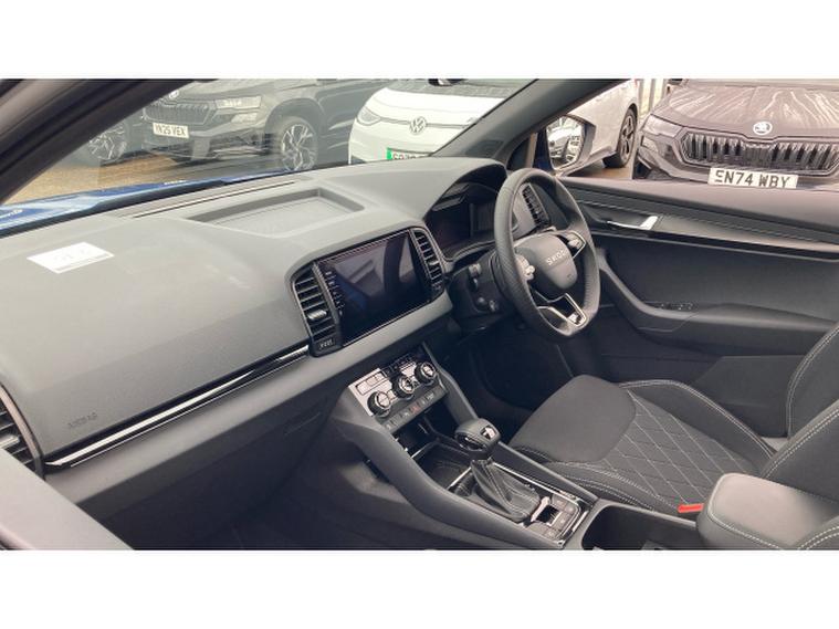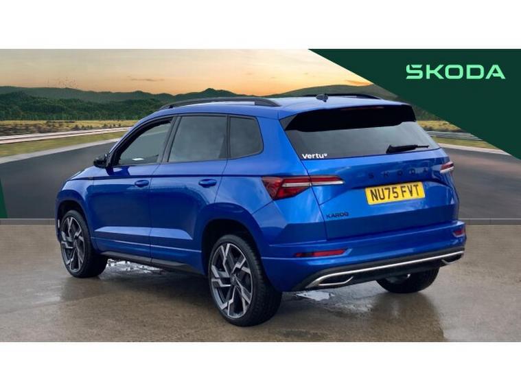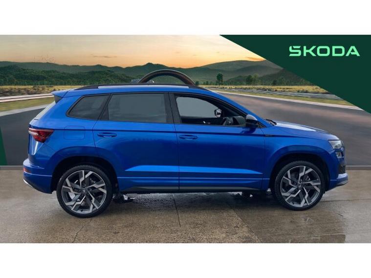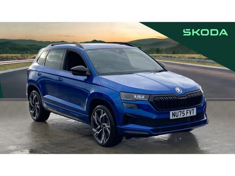 Skoda Karoq 1.5 TSI Sportline Edition 5dr DSG Petrol Estate, , Now heres a real head-turner our ex-demonstrator KODA Karoq 1.5 TSI Sportline Edition DSG, finished in stunning Blue and showing only 398 miles on the clock! Registered on a 75 plate, this near-new Karoq perfectly blends dynamic performance, premium styling, and cutting-edge technology, making it one of the most desirable SUVs on the market today.