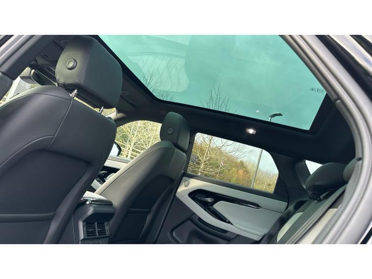 The Dynamic Black Exterior Styling Pack gives the Evoque a bold, confident presence, perfectly complemented by 19 Style 5136 Gloss Black Alloy Wheels. Privacy glass adds both style and discretion for passengers, while the fixed panoramic sunroof floods the cabin with natural light, creating an airy, sophisticated interior environment.