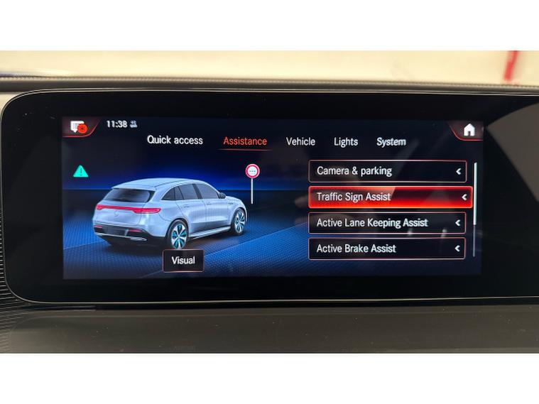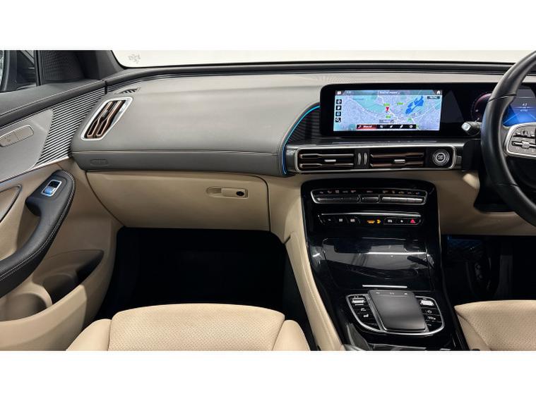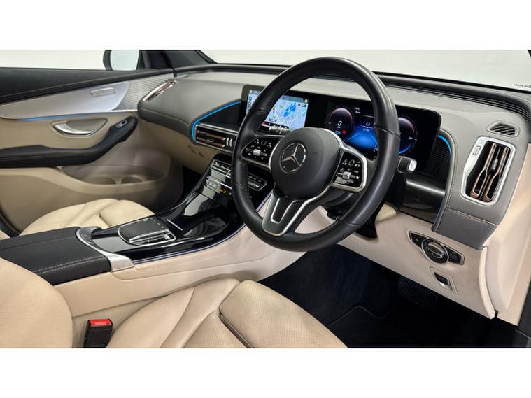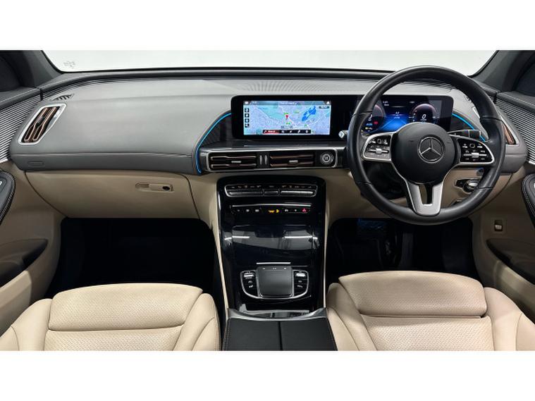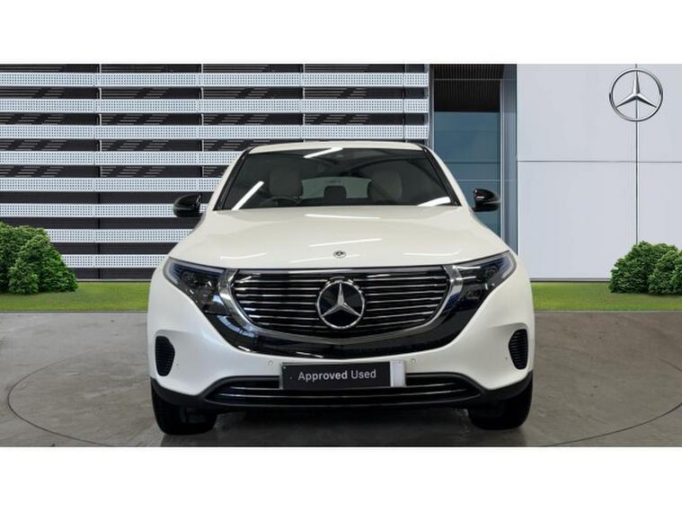This 2021 Mercedes Benz EQC 400 Sport is a premium electric vehicle offering an impressive blend of performance and practicality. As a Four Wheel Drive model, it provides confident handling in various conditions. MBUX SAT NAV as standard and KEYLESS GO allows you access to this EQC without the use of a key and once inside you sit on these comfotable SILK BEIGE/BLACK Man-Made Leather seats which are HEATED. REVERSING CAMERA is standard with BLIND SPOT ASSIST and this EQC is finished in DIAMOND WHITE BRIGHT PAINT with 19" 5 TWIN SPOKE ALLOYS.