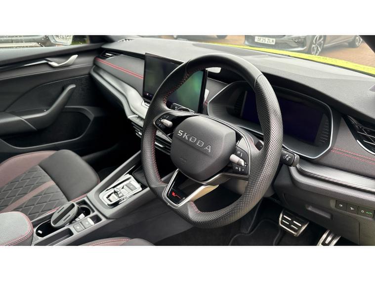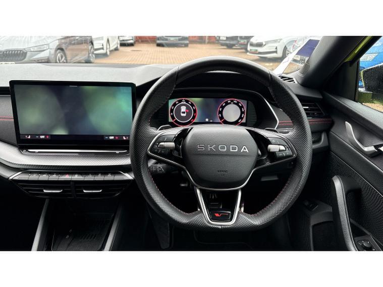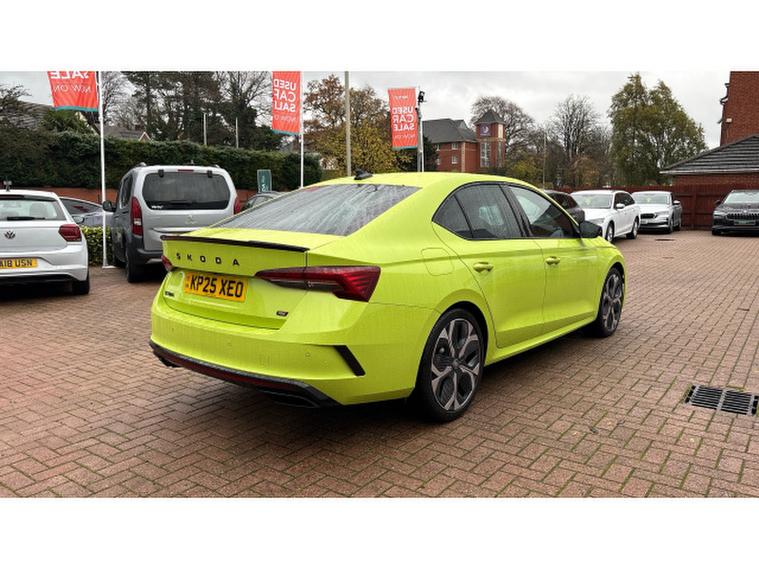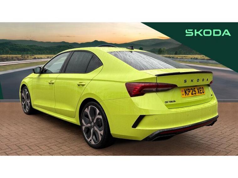 Skoda Octavia 2.0 TSI vRS 5dr DSG Petrol Hatchback, , This 2025 koda Octavia vRS 2.0 TSI DSG in striking Green is a true performance masterpiece, perfectly blending everyday usability with exhilarating driving dynamics. It is the ideal choice for those who crave excitement behind the wheel but refuse to compromise on comfort, practicality, or technology.