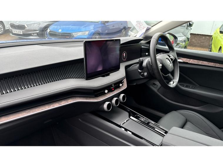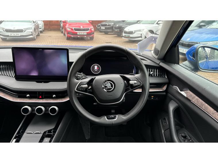 Inside, the Laurin & Klement trim takes luxury to the next level. Expect heated and ventilated leather seats, memory settings, and ambient interior lighting that creates a calm, sophisticated atmosphere. The digital cockpit and large touchscreen with satellite navigation keep everything within easy reach, while the Canton premium sound system immerses you in crystal-clear audio. With dual-zone climate control, rear camera, and adaptive cruise control, every journey feels effortless and secure.