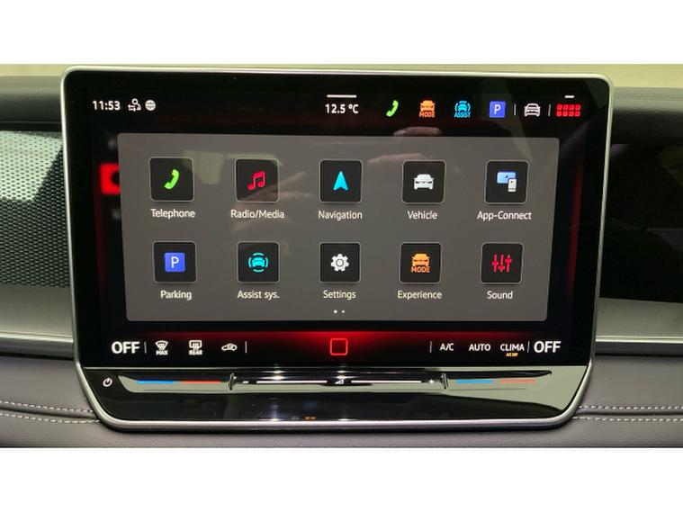 Safety is paramount with Front Assist including autonomous emergency braking, predictive speed limiter, oncoming vehicle braking support, cross traffic alert, and comprehensive airbags including curtain, side, and centre airbags. Security is enhanced with the anti-theft alarm, Keyless-Go central locking, and interior monitoring.