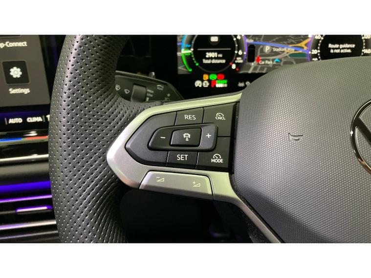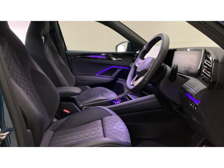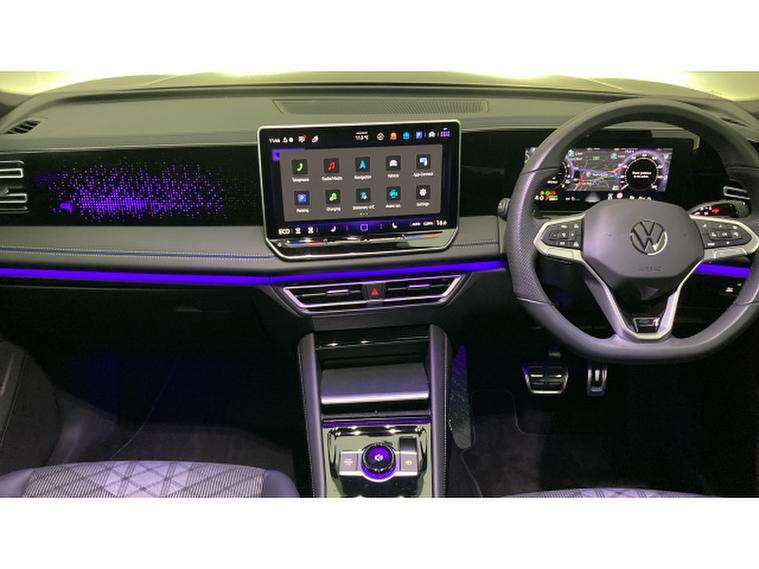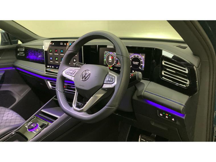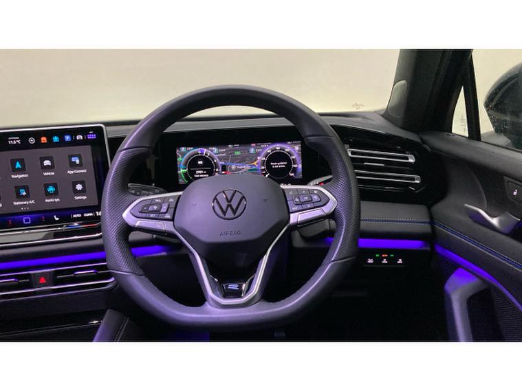 The bold R-Line styling commands attention, enhanced by striking 20 Leeds alloy wheels in black and grey diamond-turned finish. Inside, the cabin exudes premium sophistication, with R-Line sports detailing, a heated leather-wrapped multifunction steering wheel, and heated front seats ensuring comfort on every journey.