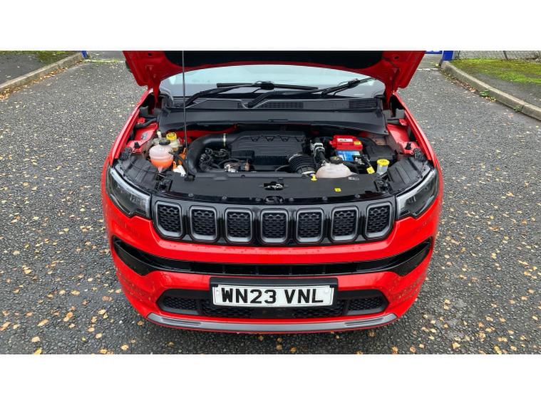 Jeep Compass 1.3 T4 GSE 4xe PHEV S Model 5dr Auto Station Wagon, , The Jeep Compass is a medium-sized SUV that has undergone a minor exterior facelift but crucially is now available as a plug-in hybrid branded as the Compass 4xe (pronounced four-by-e), as well as a e-hybrid model which is a mild hybrid and replaces the petrol only version. It has a smart infotainment system, and in 4xe guise has impressive off-road performance. From 2022, the Compass comes with Highway Assist, which combines active cruise control and lane centring, to give you semi-autonomous driving, much like Tesla Autopilot. You still need to demonstrate that you retain control of the car, through a hand on the steering wheel. You now get traffic-sign recognition, drowsy-driver detection, intelligent speed assist and emergency braking for pedestrians and cyclists fitted as standard. A reversing camera is also standard, while a 360-degree camera and blind spot monitoring are options. These cameras come in handy as rear visibility is not the best. Front, side and curtain airbags are standard.