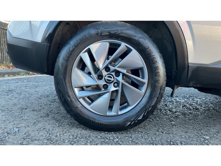 Safety is central to the Qashqais design, with Intelligent Emergency Braking, Lane Departure Warning, Traffic Sign Recognition, and Cruise Control with Speed Limiter all included as part of Nissans Intelligent Mobility suite. Externally, the Qashqai stands out with sleek, aerodynamic styling, LED daytime running lights, and 17 alloy wheels that give it a confident, modern look.