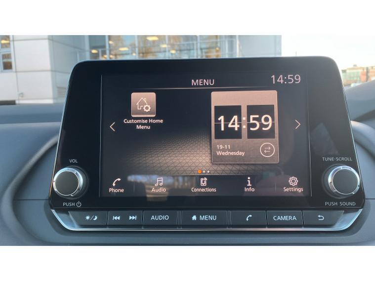 Safety comes first, with Nissans Intelligent Mobility technologies including Intelligent Emergency Braking, Lane Departure Warning, Traffic Sign Recognition, and Cruise Control with Speed Limiter, ensuring every journey is as secure as it is enjoyable. The sleek exterior styling, LED daytime running lights, and 17 alloy wheels add to its confident, contemporary appearance.