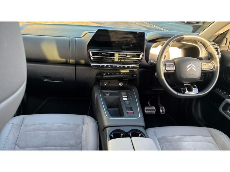Citroen C5 Aircross 1.2 Hybrid 136 E-series 5dr e-DCS6 Petrol Hatchback, , Discover this 2023 Citroen C5 Aircross e-series, a stylish and practical SUV designed for modern driving. This Euro 6 compliant model features a 1.2 litre petrol hybrid engine, offering an impressive fuel economy of up to 53 miles per gallon. Inside, you'll find the convenience of keyless entry and start, alongside Citroen Connect Play, which seamlessly integrates your smartphone with Android Auto and Apple CarPlay. The cabin is further enhanced by acoustic laminated windscreen with rain and brightness sensors, and automatic headlights with a welcoming and goodbye lighting function.