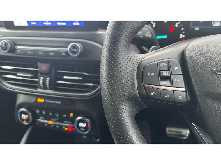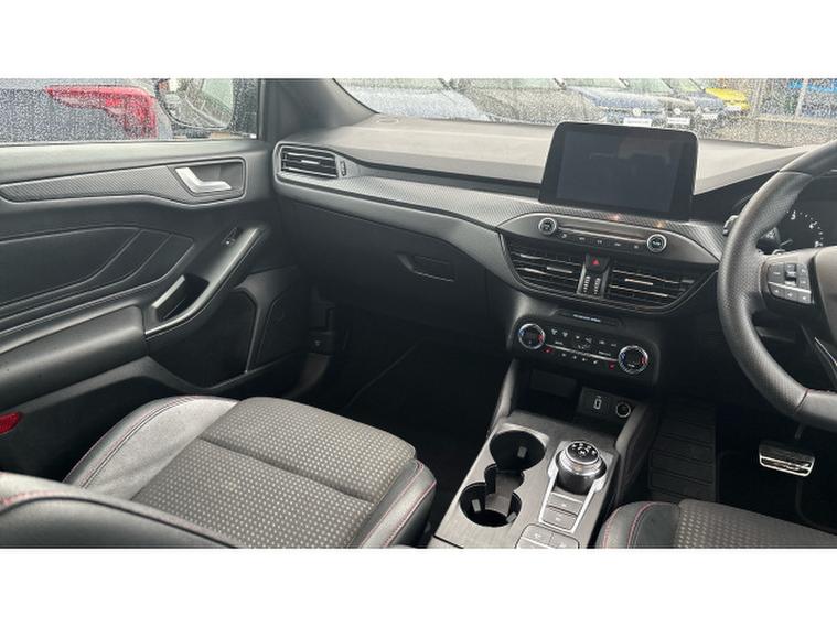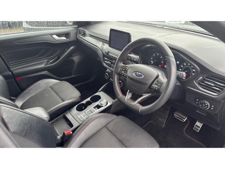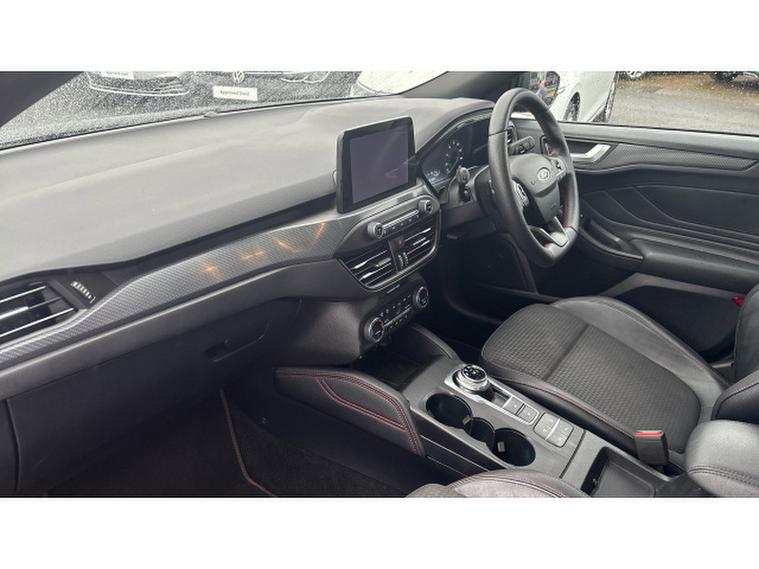As an ST‑, Line X, this Focus looks and feels genuinely upmarket. The ST‑, Line body kit, larger alloys and sports suspension give it a lower, more purposeful stance, while inside you get a cabin that feels a cut above typically featuring part‑, leather or enhanced sports seats, a flat‑, bottom steering wheel and Fords excellent SYNC infotainment system with navigation, smartphone connectivity and a crisp touchscreen interface.