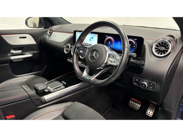 A 2021 Mercedes Benz EQA 250 AMG Line comes with the MBUX SAT NAV, and on the same screen you can access the SMARTPHONE PACK and ANDRIOD AUTO/APPLE CARPLAY giving you access to your favourite apps like SPOTIFY. BLIND SPOT ASSIST and LANE KEEPING ASSIST help to keep you safe on the roads. HEATED FRONT SEATS are perfect for the winter months. Finished in DENIM BLUE METALLIC PAINT and BLACK MAN-MADE LEATHER SEATS and complimented by these AMG ALLOYS makes this a perfect choice.