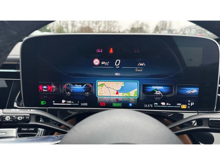 Inside, the cabin is a masterclass in technology and comfort. The MBUX Superscreen stretches across the dashboard, blending digital clarity with intuitive control. MBUX Satellite Navigation and a crisp Head Up Display keep you informed and focused, while the Burmester 4D surround sound system transforms every journey into a concert experience. Tonka Brown climatised and memory leather seats deliver supreme comfort whatever the weather, and the panoramic sliding sunroof floods the interior with natural light. Wireless mobile phone charging and Apple CarPlay ensure seamless connectivity on the move.