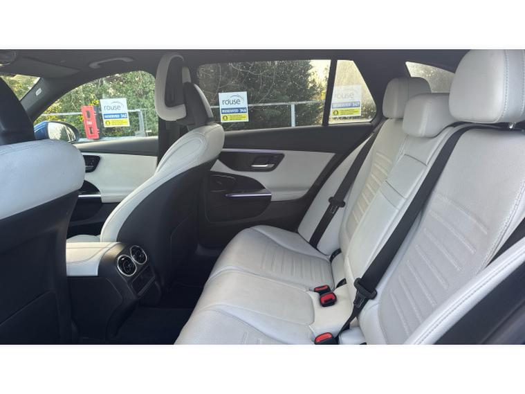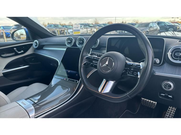 Inside, the C Class Estate defines contemporary comfort. The Neva Grey heated leather seats feature full memory function, ensuring the perfect driving position every time. A panoramic sliding sunroof floods the cabin with light, while MBUX satellite navigation with voice control and a fingerprint scanner keeps your journey secure, intuitive and connected. Apple CarPlay integration makes smartphone use seamless, keeping your world within easy reach.