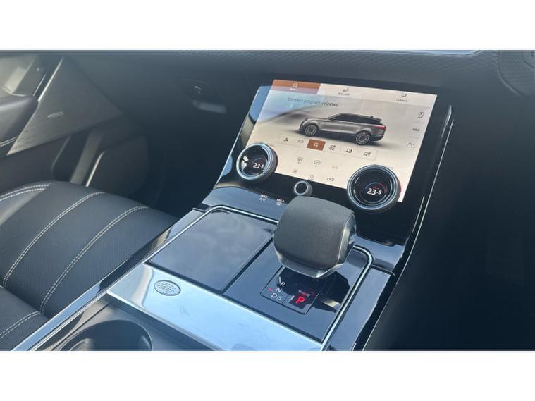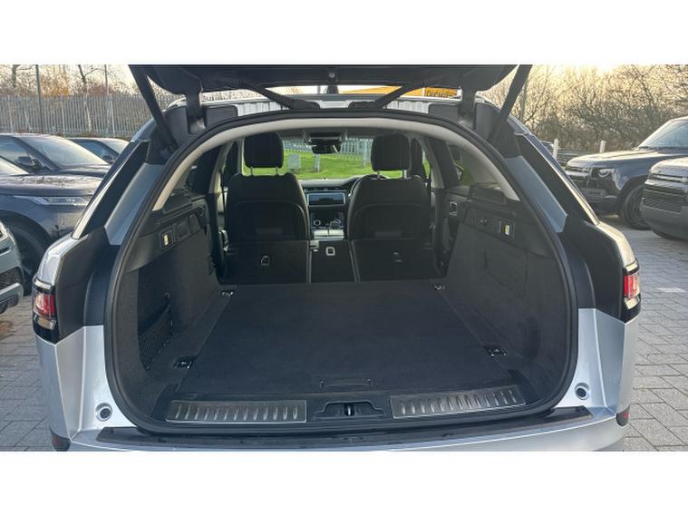 Step closer and the details continue the story. The 20 Gloss Black alloy wheels lend a purposeful stance, perfectly complementing the sleek, reductive lines that have become the Velars signature. Privacy glass adds to the air of refinement, while the fixed panoramic roof arches gracefully overhead, allowing natural light to flood the cabin and heighten the sense of calm within.