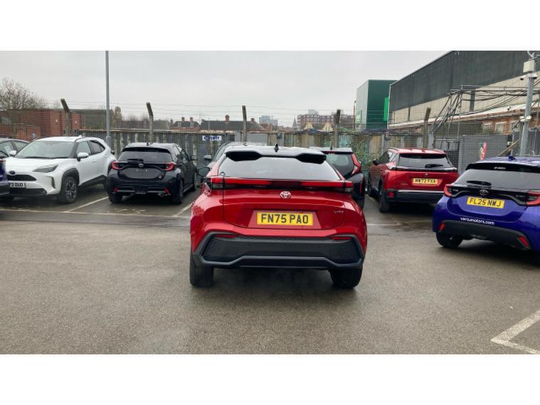 Toyota C-HR 1.8 Hybrid Design 5dr CVT Hybrid Hatchback, , Behold the Scarlet Flare bi-tone stunner thats here to make every journey feel like a tiny parade of triumph. This sharp little number has delivery mileage on the clockbasically still smelling of new car optimism and ready to win hearts.
