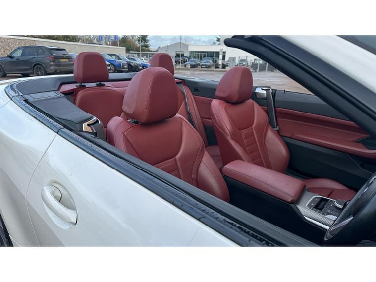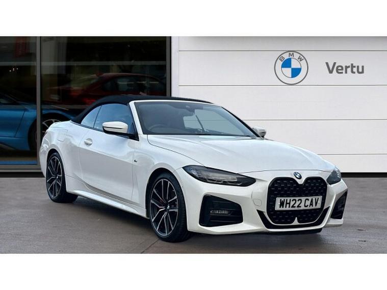 BMW 4 Series 420d MHT M Sport 2dr Step Auto Diesel Convertible, , Presenting the striking 2022 BMW 420d M Sport Convertible, finished in timeless Alpine White with a luxurious Tacora Red interior featuring Black Contrast Stitching. With just 49, 917 miles, this convertible perfectly blends dynamic performance, open-air freedom, and elegant design, delivering a truly premium driving experience. When you buy from Vertu BMW Exeter, you can do so with complete confidence. All our Approved Used BMWs come with 12 Months BMW Approved Warranty, 12 Months BMW Roadside Assistance, 12 Months MOT, and a full service history for total peace of mind. Every vehicle is meticulously prepared and maintained by manufacturer-trained technicians, ensuring it meets BMWs exacting standards of quality and reliability. Choosing Vertu BMW Exeter means benefiting from expert knowledge, exceptional customer care, and an ownership experience tailored around you. We invite you to contact our friendly team todayon request, we will be delighted to send you a personalised video presentation of this BMW 420d M Sport Convertible, showcasing its features in detail and answering any questions you may have. This stunning example is equipped with a range of desirable features designed for comfort, efficiency, and convenience, including BMWs innovative Mild Hybrid Technology for improved performance and fuel efficiency, Parking Assistant to make manoeuvring effortless, and Heated Front Seats that add warmth and luxury to every drive. The 420d M Sport Convertible embodies sophistication and sportiness in equal measureavailable now at Vertu BMW Exeter. Contact us today and experience this exceptional car for yourself.