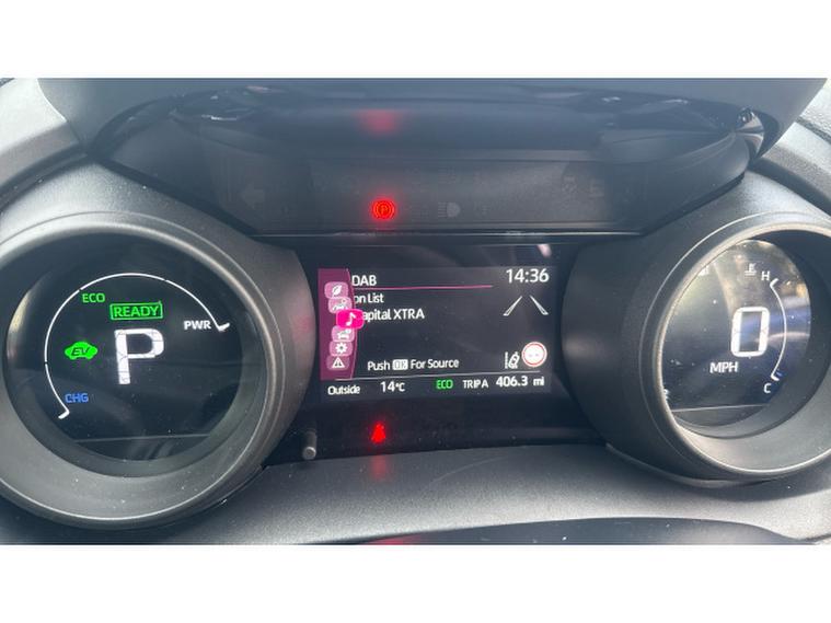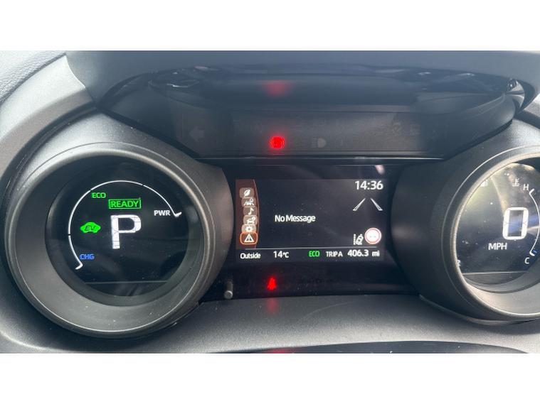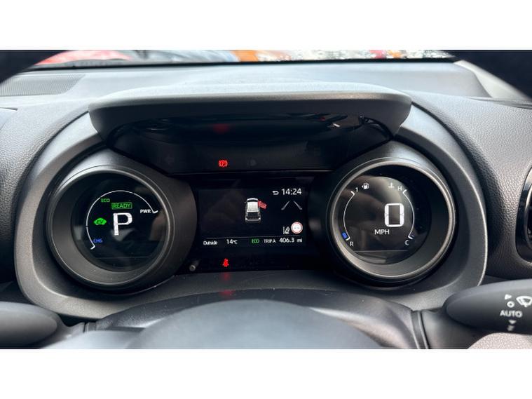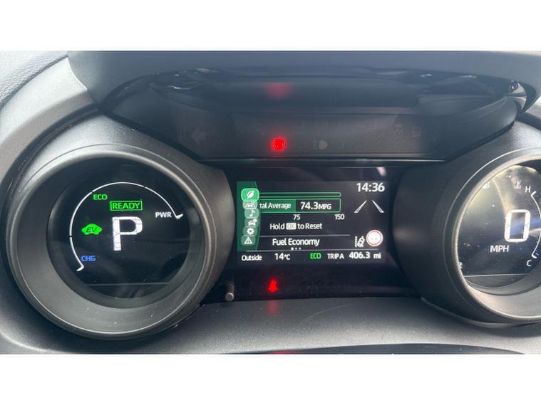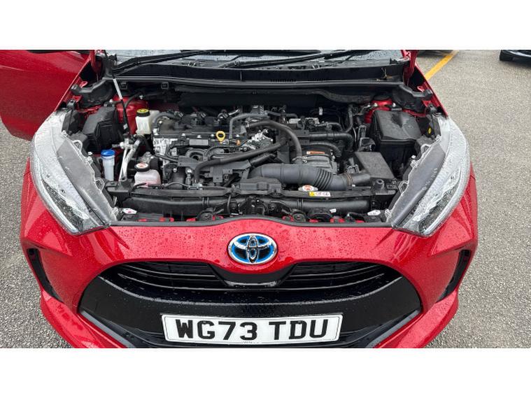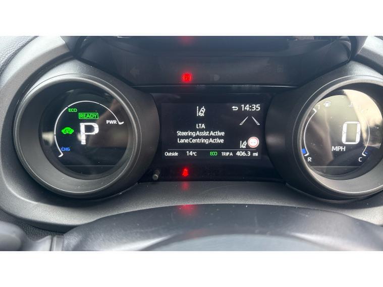 Powered by Toyota's proven 1.5-litre self-charging hybrid engine paired with a smooth CVT gearbox, this Yaris delivers outstanding fuel economy, quiet operation and effortless driving in both city and motorway environments. The hybrid system seamlessly switches between electric and petrol power, keeping emissions low and efficiency high, making it a superb choice for those wanting to reduce running costs and environmental impact.