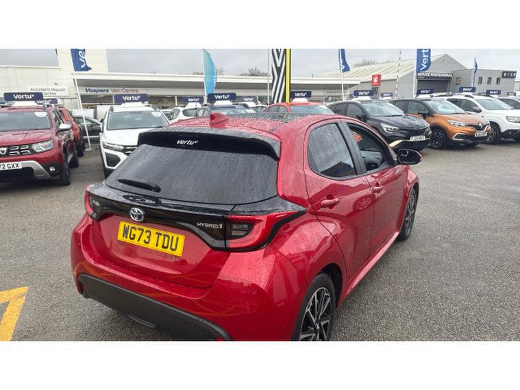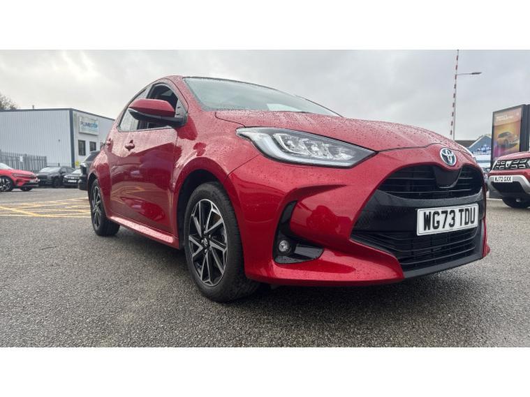 Toyota Yaris 1.5 Hybrid Design 5dr CVT [Panoramic Roof] Hybrid Hatchback, , Toyota Yaris 1.5 Hybrid Design offers the perfect blend of efficiency, comfort and modern technology, making it an ideal choice for drivers seeking low running costs without sacrificing style or equipment. With just 15, 041 miles, this nearly new example is in excellent condition and showcases the Yaris' reputation for reliability, refinement and everyday usability. Finished in a sleek and contemporary colour, it delivers a smart, sophisticated look that complements its sporty stance and sharp LED lighting.