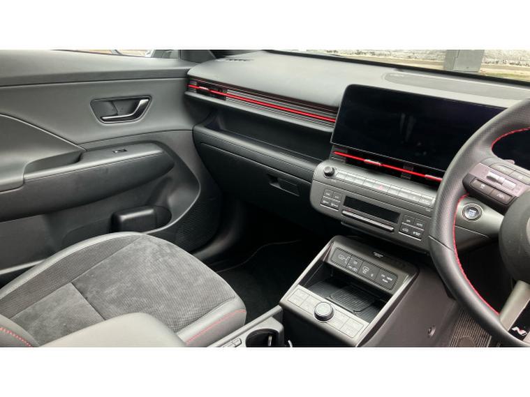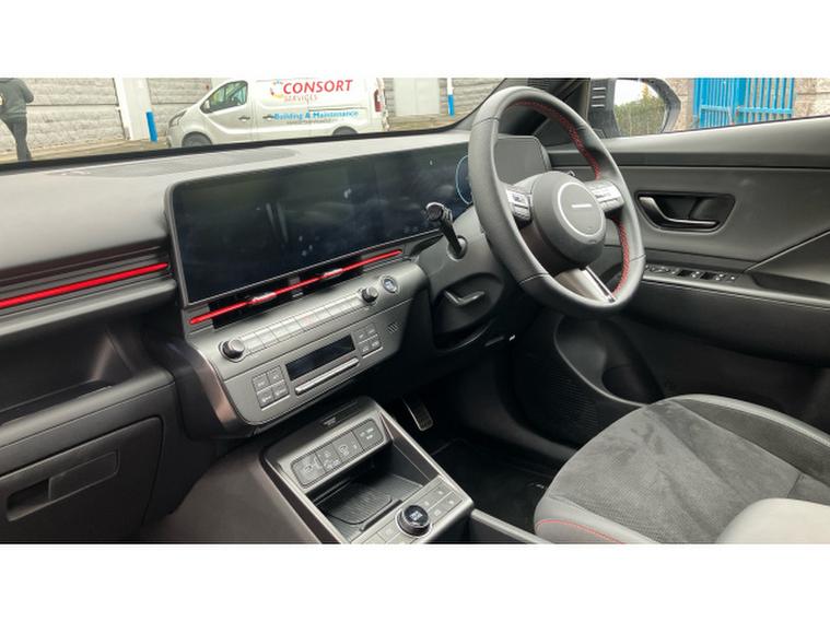 Hyundai KONA 1.6 GDi Hybrid N Line S 5dr DCT Hybrid Hatchback, , Discover the 2025 Hyundai KONA h GDi N Line S, a sophisticated 1.6L Petrol Hybrid that combines efficiency with modern comfort. This Euro 6 compliant model offers a seamless driving experience, enhanced by a heated steering wheel for those cooler mornings and a convenient wireless phone charging pad to keep your devices powered up. Stay connected effortlessly with Bluetooth connectivity featuring voice recognition, and enjoy the ease of automatic headlights that activate with a dusk sensor, ensuring optimal visibility at all times.