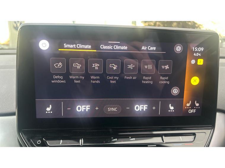 The ID.4 Life is packed with features designed to enhance comfort and convenience. The Comfort Package includes a 2-zone 'Air Care Climatronic' air conditioning system, heated front seats, and a heated, leather-wrapped multi-function steering wheel with touch control ensuring a pleasant driving experience in all conditions. The heated windscreen washer jets and climate windscreen are thoughtful touches that make frosty mornings much easier.