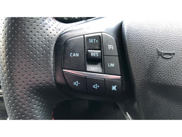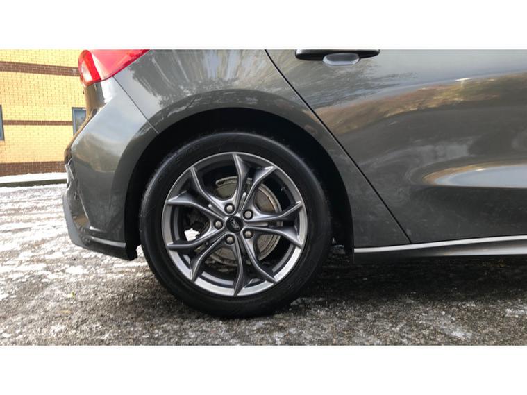 The ST-Line Edition trim brings that sporty edge, from bold body styling and 17″, alloy wheels to a flat‑, bottom steering wheel, red stitching, and a head‑, turning rear spoiler.