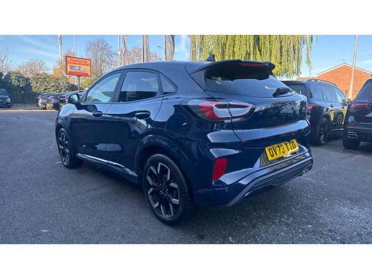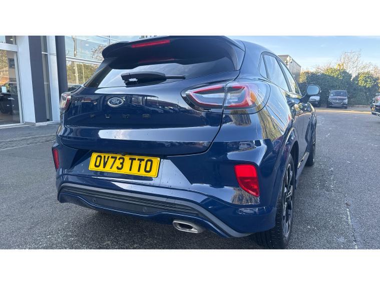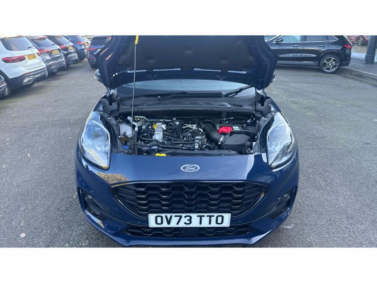 The 2023 Ford Puma 1.0 EcoBoost Hybrid mHEV ST-Line X blends sporty design, hybrid efficiency and everyday practicality in a compact and stylish package. With its mild-hybrid 1.0-litre petrol engine paired to a smooth dual-clutch automatic transmission (DCT), it delivers responsive performance and excellent economy, making it ideal for urban commutes and weekend escapes alike. The ST-Line X trim adds sporty flair with bold alloy wheels, dynamic body styling and refined interior touches that elevate its presence on the road. Inside, you'll find a comfortable and well-equipped cabin with premium materials, advanced infotainment, smartphone integration and a generous boot for a car of its size. Advanced safety and driver assistance features like Adaptive Cruise Control, Lane-Keeping Aid and Pre-Collision Assist provide reassurance on every journey. Combining modern technology, sporty looks and practical usability, the Ford Puma ST-Line X is a standout choice for drivers wanting efficiency, style and versatility in one compact hatchback.