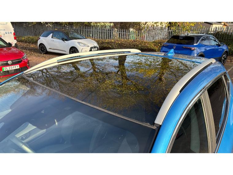 The car looks superb in gleaming metallic blue paintwork with 18 inch diamond cut alloys and also comes with an impressive specification. Standard features panoramic glass roof, include dual zone climate control, cruise control, sat nav with TomTom active services, front and rear parking sensors with camera, Apple car-play/Android auto, blue-tooth, USB, auto lights and wipers plus a host of advanced safety and security features.