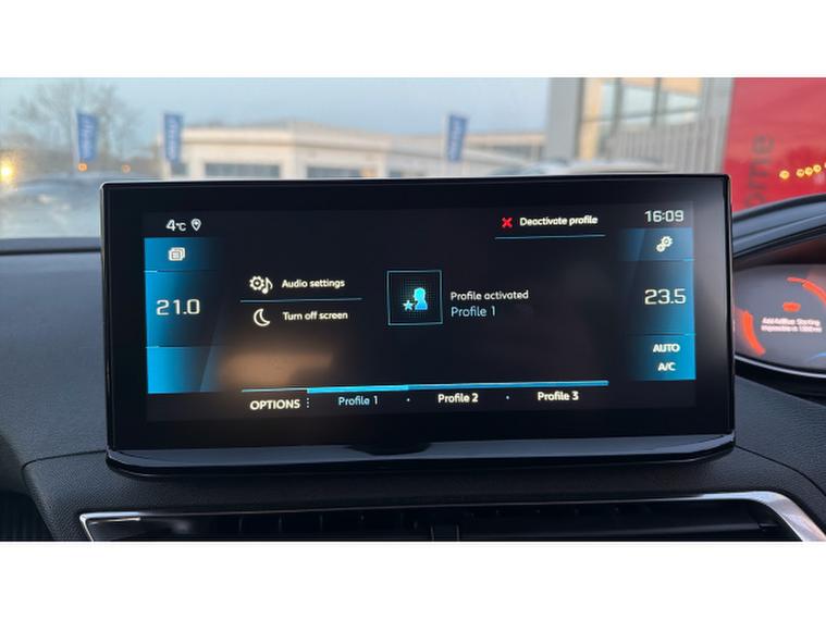- Peugeot i-cockpit with configurable 12.3" headup digital instrumental panel and compact sports steering wheel