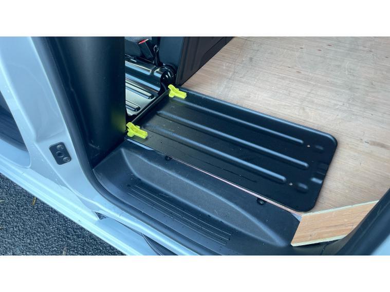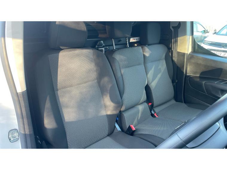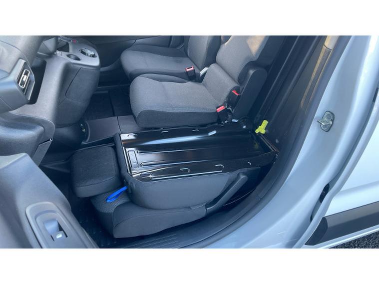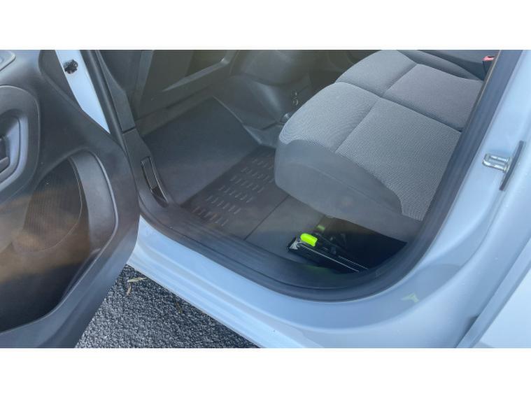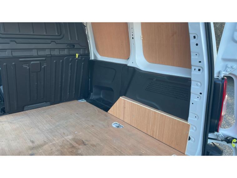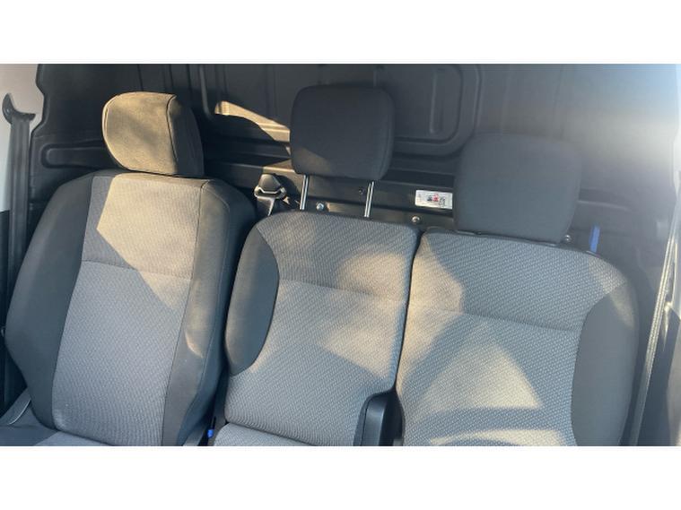 The rear has a sliding nearside door for kerbside access and double doors at the back and is ply-lined for protection. The three seat configuration allows the outer passenger seat to fold down and by opening the flap in the steel bulkhead, this creates and large gap to carry long items from the rear into the passenger footwell.