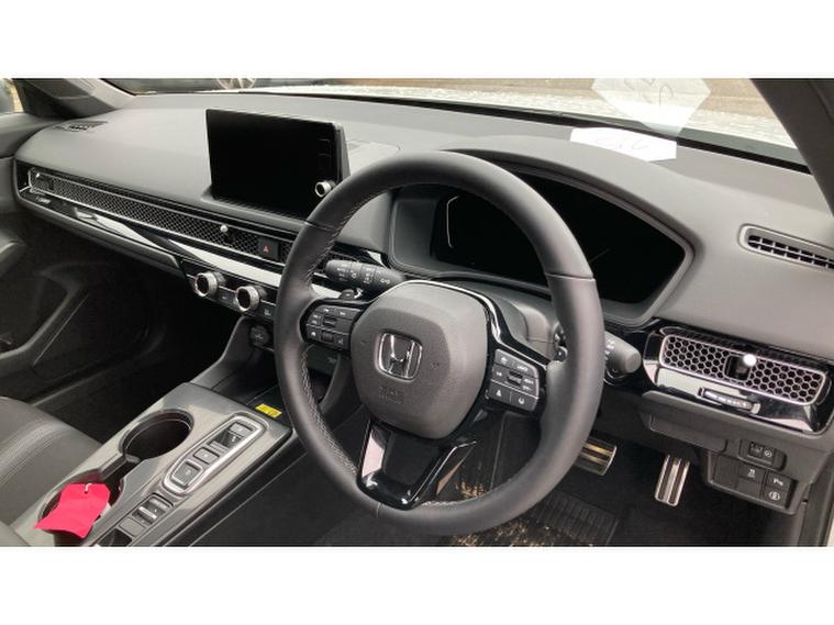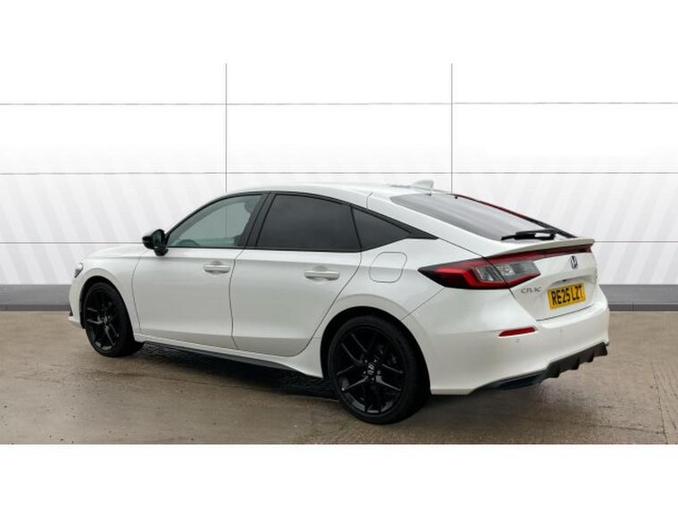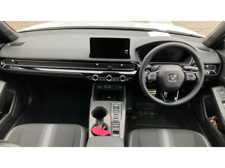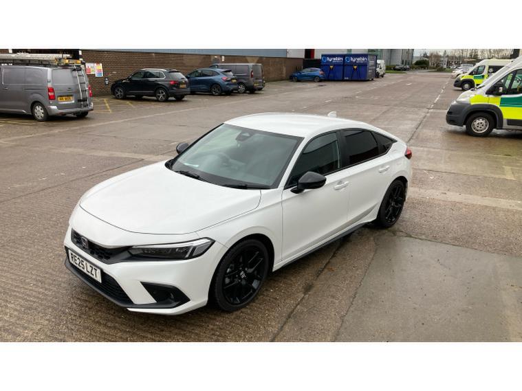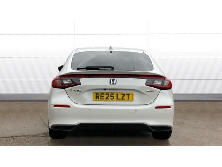 Honda Civic 2.0 eHEV Sport 5dr CVT Hybrid Hatchback, , This 2025 Honda Civic Hatchback 2.0 , e:HEV Sport 5‑, door with CVT, finished in a crisp metallic white, is the perfect fusion of sporty design and hybrid efficiency. The pure white exterior emphasises the Civics sharp, aerodynamic profile, accentuating its sleek lines, bold grille, and aggressive stance. Subtle black detailing on the wheels, side mirrors, and window trim enhances the Sport trims dynamic and athletic character.