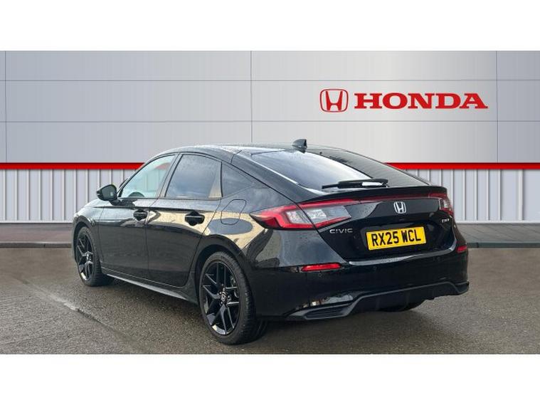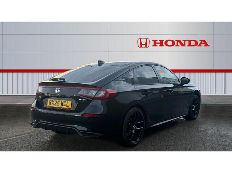 Honda Civic 2.0 eHEV Sport 5dr CVT Hybrid Hatchback, , This 2025 Honda Civic Hatchback 2.0 , e:HEV Sport finished in sleek black delivers an exciting fusion of dynamic styling and modern hybrid efficiency. Its glossy black paintwork accentuates the Civics aerodynamic lines and bold design features, creating a sporty yet refined aesthetic. With blacked-out trim, 18-inch alloy wheels, and contrasting accents, the Sport trim emanates a sense of athletic sophistication.