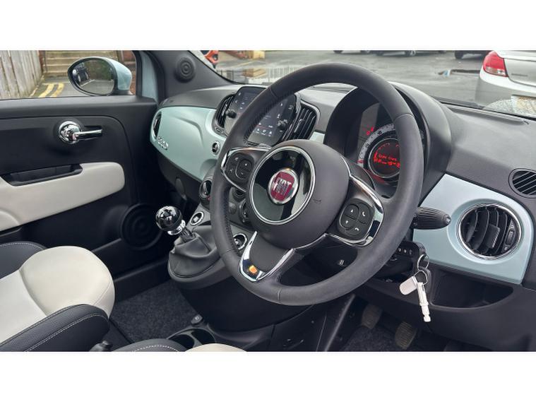 Fiat 500 1.0 Mild Hybrid Dolcevita [Part Leather] 3dr Petrol Hatchback, , A chic and efficient city car that blends iconic Italian style, modern hybrid technology, and everyday practicality. Powered by a refined 1.0-litre mild hybrid petrol engine, this Fiat 500 delivers smooth, responsive performance with excellent fuel economy and lower emissions, making it ideal for urban commuting and longer journeys alike. The Dolcevita trim enhances its timeless appeal with elegant chrome detailing, 16-inch alloy wheels, LED daytime running lights, and a panoramic glass roof, giving it a distinctive and sophisticated presence. Inside, the stylish cabin features part-leather upholstery, a leather-trimmed steering wheel, ambient detailing, and high-quality finishes for a premium feel. Technology highlights include a 7-inch touchscreen infotainment system with Apple CarPlay, Android Auto, Bluetooth, and DAB radio for seamless connectivity and entertainment on the move. Convenience is further enhanced with air conditioning, rear parking sensors, and keyless start, while safety features such as lane assist, multiple airbags, and hill-hold control provide peace of mind. Presented in excellent condition with low mileage and a full service history, this 2022 Fiat 500 Dolcevita is the perfect combination of elegance and efficiency. Contact our sales team today to arrange a viewing and test drive.
