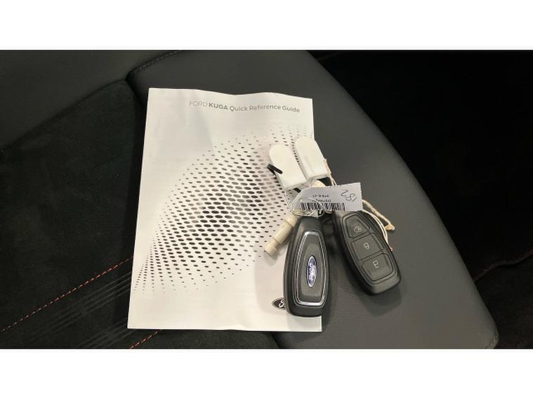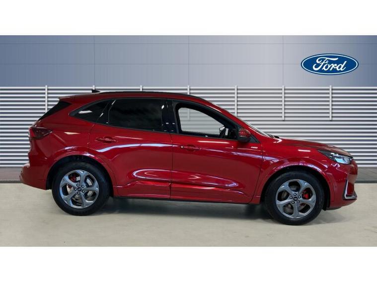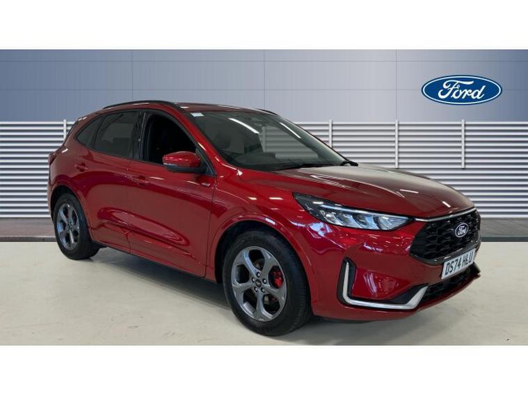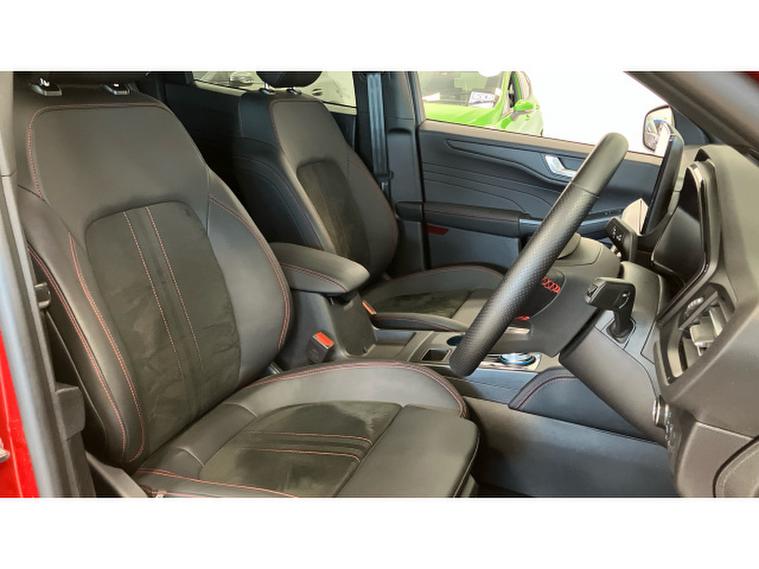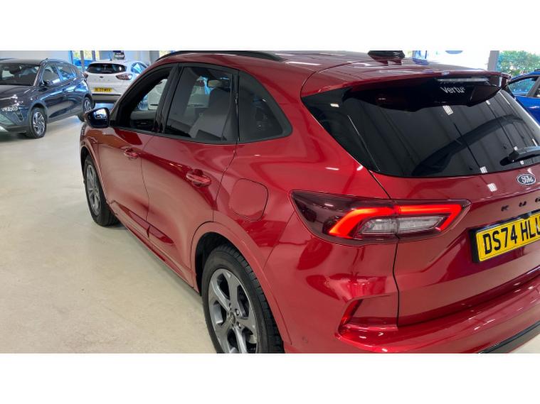 Ford Kuga 2.5 FHEV ST-Line 5dr CVT Hybrid Estate, , The Ford Kuga Estate 2.5 FHEV ST-Line 5dr CVT is a stylish and practical family car, with the added versatility of the low running costs , great looks, comfort, space and a higher driving position. This carefully prepared example has covered 13473 miles and boasts a full-service history. With clean grey half leather upholstery and seats which offer impressive comfort, utilise the cruise control whilst commuting and stay connected and contactable via Bluetooth. Wheel mounted controls allow for a safe and practical experience when driving, with little need to take your eyes off the road. This model is also fitted with front and rear parking sensors and an optical display providing convenience and ease, as well as having the ability to control the temperature via the climate-controlled air conditioning.
