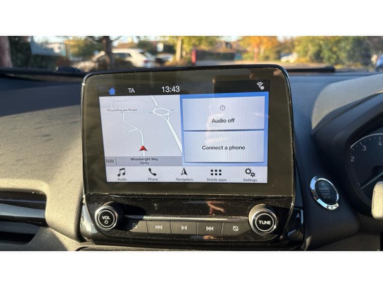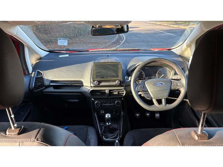 Step inside and the EcoSport continues to impress. The ST-Line trim means sporty detailing throughout: red stitching, flat-bottom steering wheel, gloss black accents and supportive sports seats that make commuting a pleasure rather than a chore. Sit up high, enjoy that commanding SUV driving position and let the easy-to-use infotainment system handle everything from navigation to smartphone connectivity.
