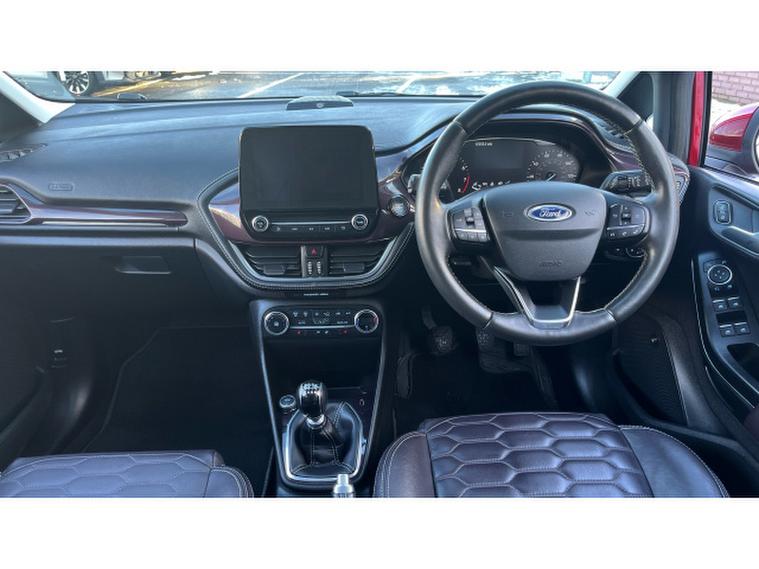 Ford Fiesta Vignale 1.0 EcoBoost 5dr Petrol Hatchback, , Vertu Ford Durham are delighted to have this stunning Ford Fiesta Vignale finished in Ruby red metallic with the factory option of 18 inch Vignale 8 spoke polished alloy wheels. This car has only had 2 owners from new and comes with a comprehensive history and a great specification. All our vehicles at Vertu Motors come fully prepared with our peace of mind Main Dealer guarantee. Every vehicle is fully prepared both mechanically and cosmetically up to the highest standard which even includes having any tyre replaced that has less than 3mm tread depth (legal limit is 1.6mm). Every vehicle will have a minimum of 9 months MOT remaining and you will not have to service the vehicle for at least 6 months or 6000 miles. We ensure that you will have a minimum of 2 keys and to give you even further reassurance we also supply you with a 3 months complimentary warranty and a 14-day money back guarantee. Our vehicles also come with a full HPI vehicle check assuring you that your new vehicle will have no registered accident claims reported, or any outstanding finance, it also shows the vehicle has not been imported. In addition to this we also do a full Government VOSA report check to verify the mileage on all cars over 3 years old. This service comes free of charge to all our customers unlike other main dealers who charge you an admin fee for this service. We also offer nationwide delivery on all our vehicles, so call today to arrange a viewing.