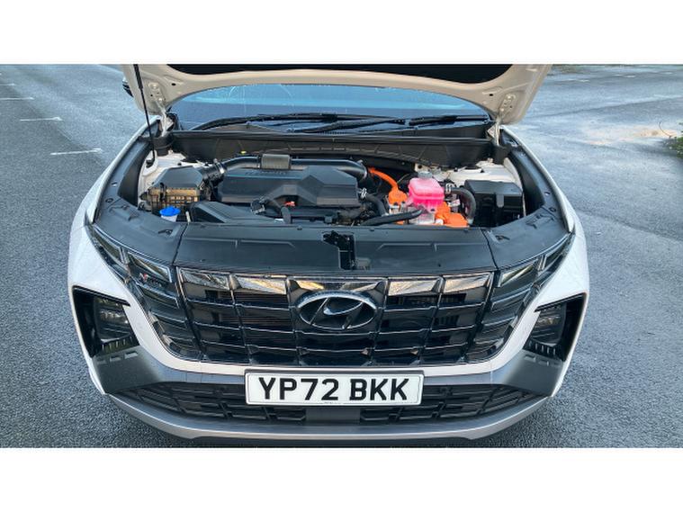 Hyundai TUCSON 1.6 TGDi Hybrid 230 N Line S 5dr 2WD Auto Hybrid Estate, , Sporty N Line specification in this Tucson Hybrid. The 230 Hybrid powertrain is highly sought after and well regarded for it's combination of seamless automatic driving and economy. This car is finished in white which sets off the N Line design features perfectly. All the good stuff inside like NAV, Bluetooth, Apple / Android play and an easy to use sat nav system. With warranty until October 2027.