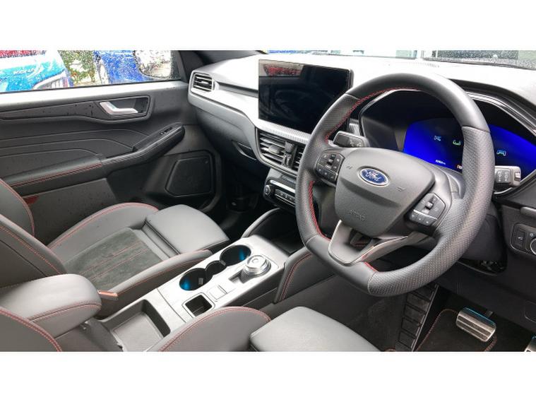 Ford Kuga 2.5 FHEV ST-Line 5dr CVT Hybrid Estate, , Experience the perfect blend of efficiency, style, and practicality with the Ford Kuga FHEV, a forward-thinking hybrid SUV designed to meet the demands of modern driving. Powered by Fords advanced 2.5-litre full hybrid engine, paired with a smooth CVT automatic transmission, this Kuga delivers responsive performance, low emissions, and excellent fuel economy, making it ideal for both urban commutes and longer journeys. The sporty ST-Line trim enhances its dynamic presence with bold exterior styling, 18-inch alloy wheels, aerodynamic body accents, and sleek LED lighting that ensures a confident road presence. Step inside to discover a sophisticated, driver-focused cabin featuring premium sports seats, dual-zone climate control, ambient lighting, and Fords cutting-edge SYNC infotainment system with navigation, Apple CarPlay, Android Auto, and wireless connectivity for seamless in-car entertainment and communication. Practicality is outstanding, with versatile rear seating, generous boot space, and clever storage solutions to suit family life or active lifestyles. Comprehensive safety features, including adaptive cruise control, lane-keeping assist, blind-spot monitoring, and pre-collision assist, provide peace of mind on every journey.