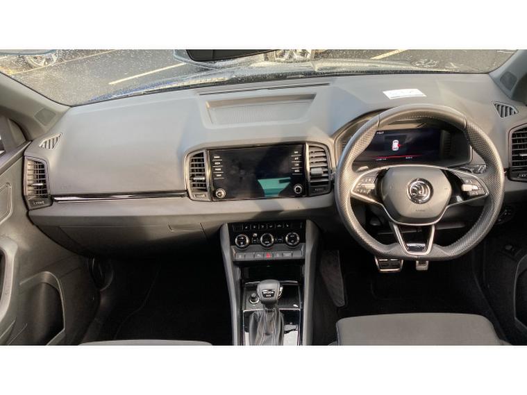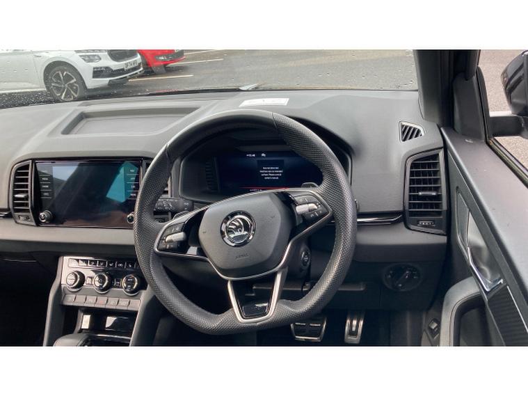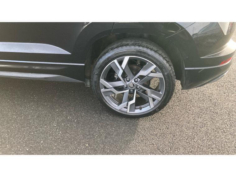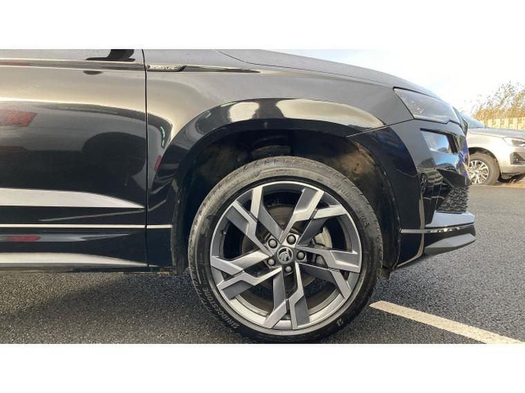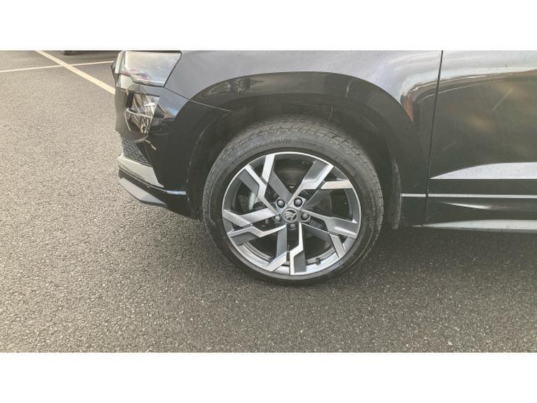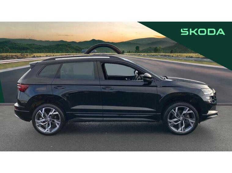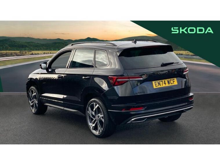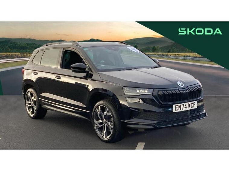 Skoda Karoq 2.0 TSI Sportline 4x4 5dr DSG Petrol Estate, , Prepare to be impressed. This Skoda Karoq 2.0 TSI Sportline 4x4 DSG on a 74 plate is an absolute standout, offering power, presence and premium quality in one thrilling package. With just 6274 miles, this example is exceptionally fresh and showcases the very best of kodas dynamic SUV engineering. Finished in sleek black and enhanced with the Sportline styling kit, it commands attention from every angle and delivers a truly athletic driving experience.